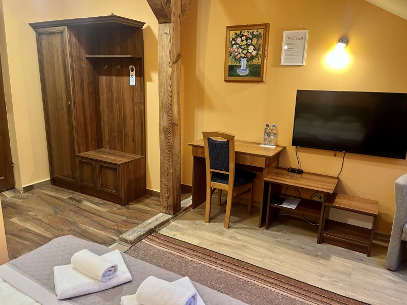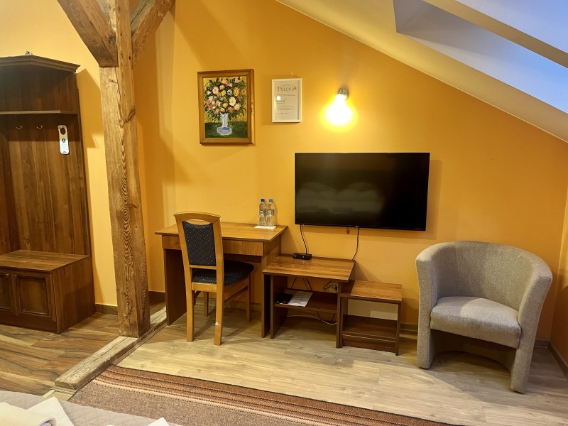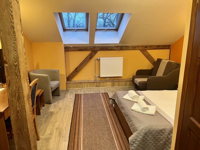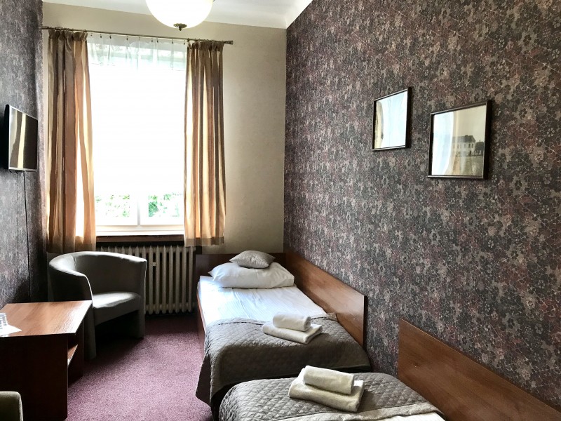 Na pierwszym miejscu stawiamy sobie zadowolenie gości z pobytu w naszym hotelu. Robimy wszystko, co w naszej mocy, aby jakość świadczonych przez nas usług była na jak najwyższym poziomie. Z najwyższą dbałością o wszystkie szczegóły przygotowaliśmy komfortowe noclegi w pokojach hotelowym o wysokim standardzie. Stworzyliśmy dla Państwa doskonałe warunki do pracy, wypoczynku czy rodzinnych wakacji. Dysponujemy trzydziestoma wygodnymi pokojami (1-, 2-, 3-, 4- osobowe) o eleganckim i gustownym wystroju. Oferujemy wygodne łóżko, miejsce do pracy, szafy, półki oraz komfortowe fotele wypoczynkowe. Każdy pokój wyposażony jest w telewizor. Nasze pokoje gościnne charakteryzują stonowane kolory, przemyślany układ przestrzenny, klasyczny wystrój, miękkie wykładziny oraz funkcjonalne meble. Jesteśmy przekonani, że zaspokoją potrzeby wszystkich gości. Oferujemy atrakcyjne rabaty dla większych grup oraz przy dłuższym czasie pobytu.